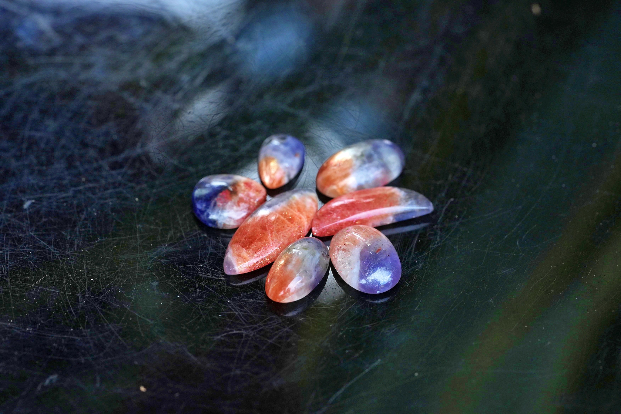 アイオライトとサンストーンの2色の彩が美しいピース
