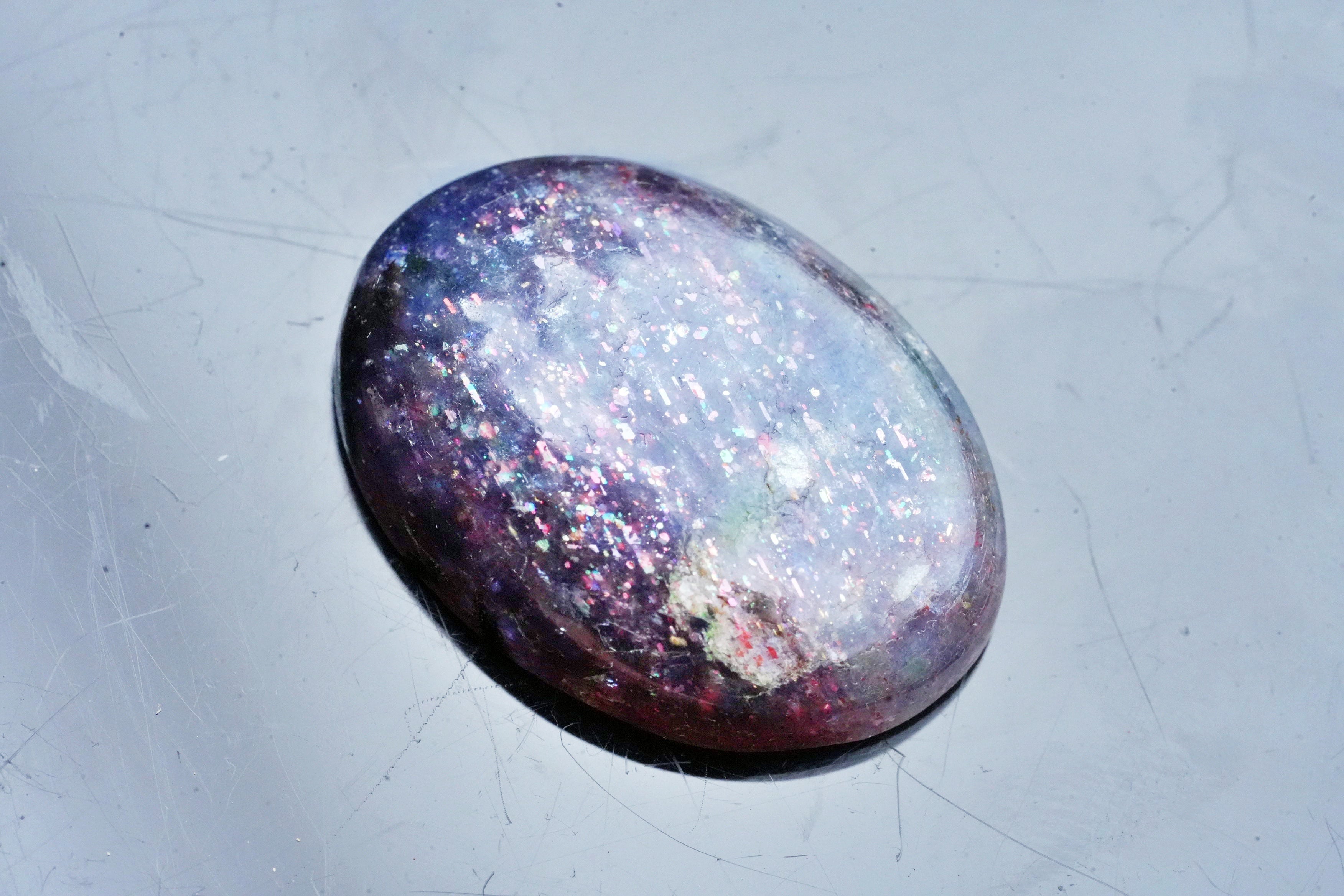 光に透かすと赤いレピドのような色合いも見えます。