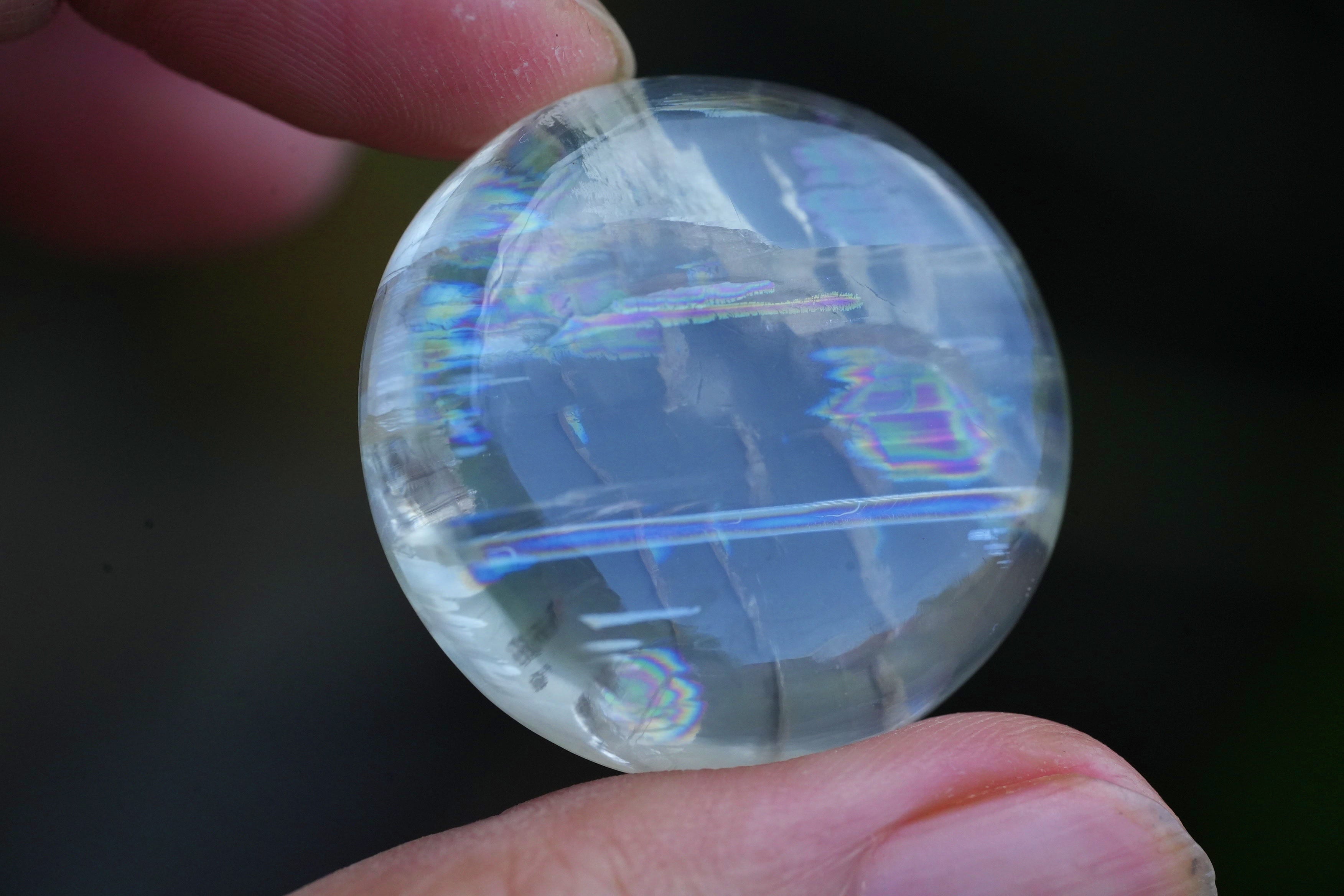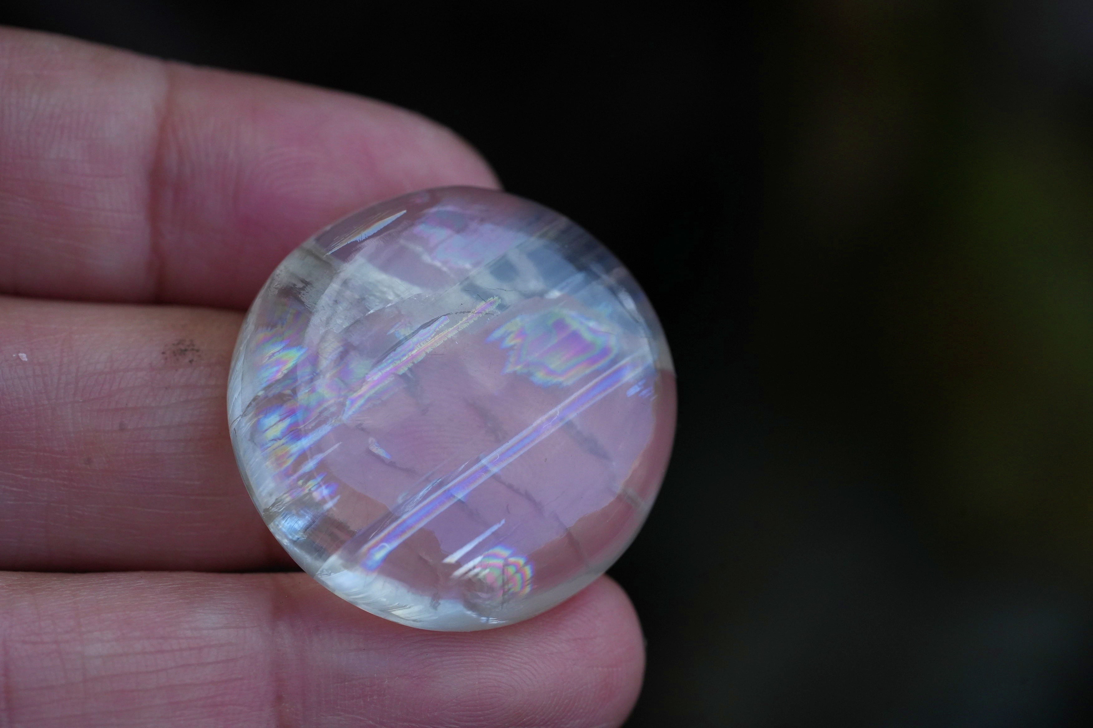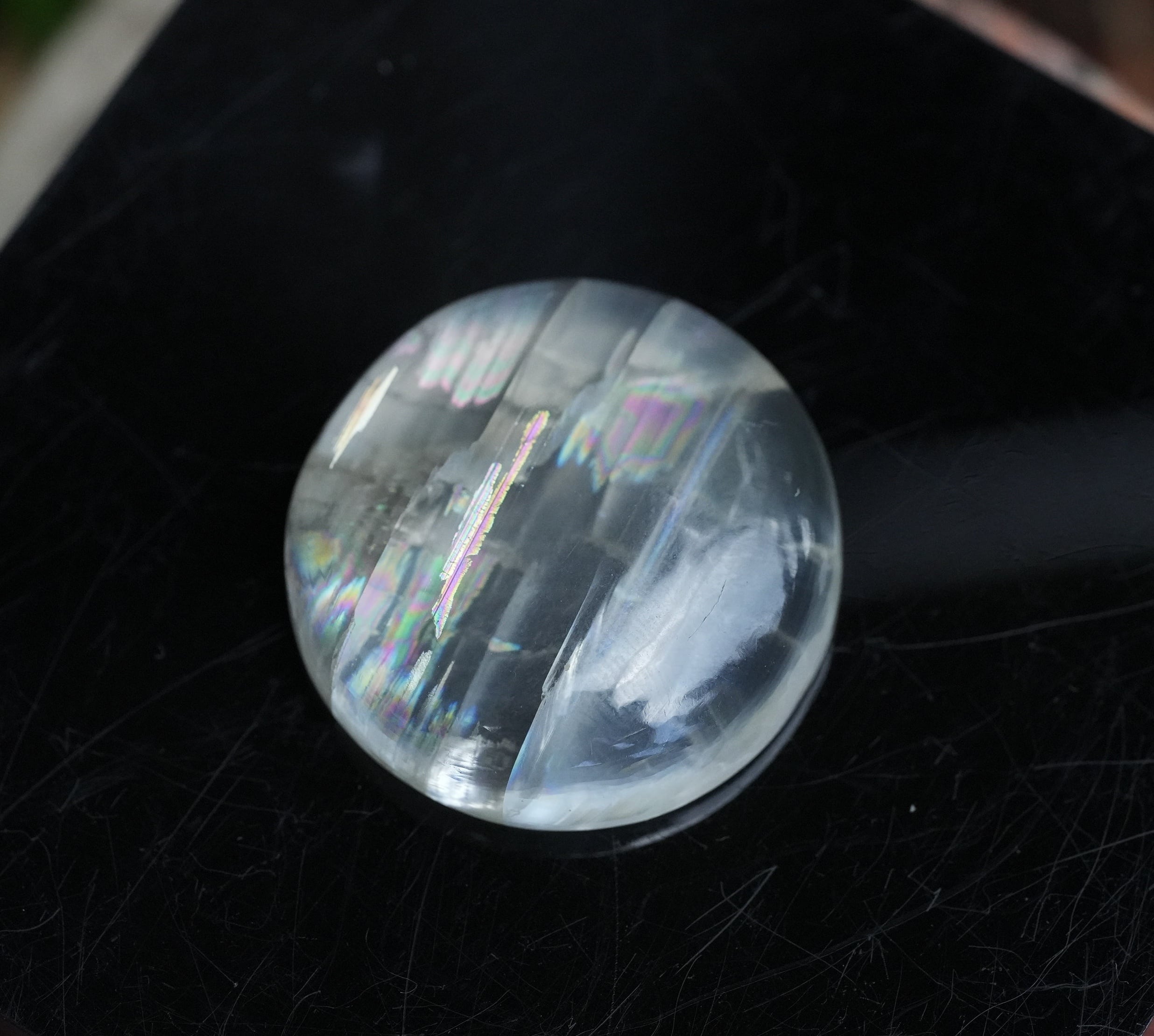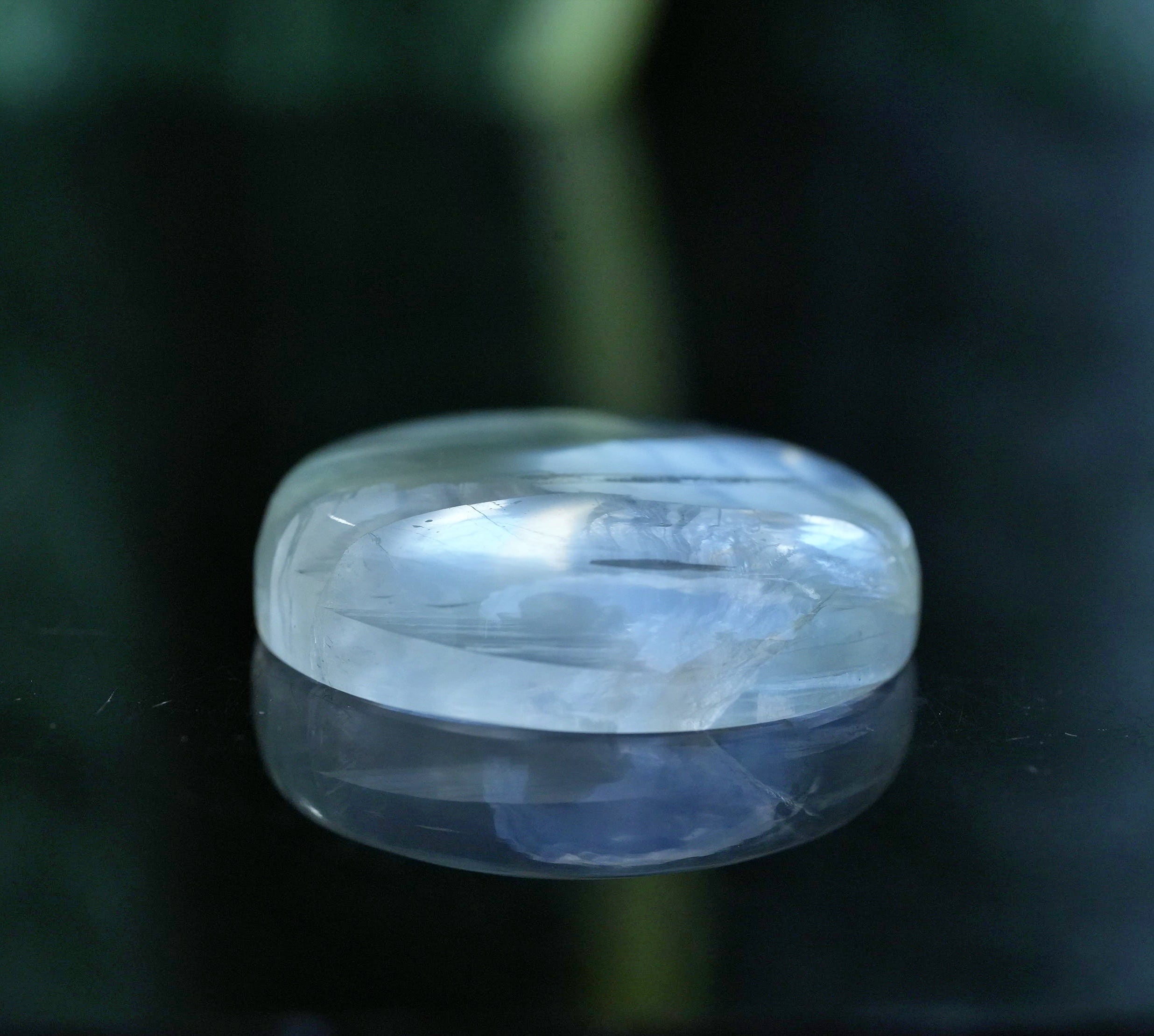 虹色のシラー(ラティス効果): 通常のムーンストーンが青や白の光を放つのに対し、マラウイ産は石の内部に虹色の層や筋状の光(レインボーラティスのような輝き)が見えるのが特徴です。