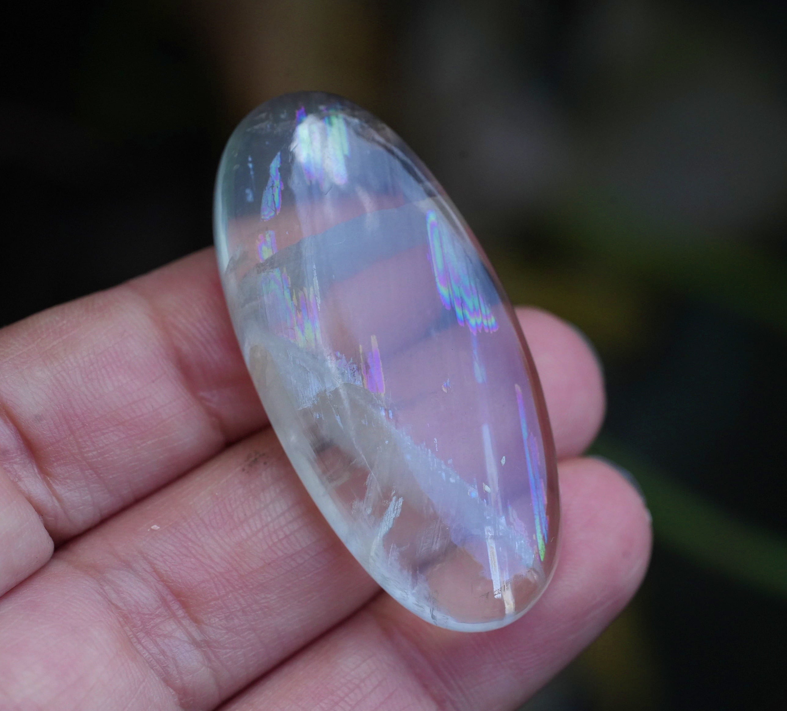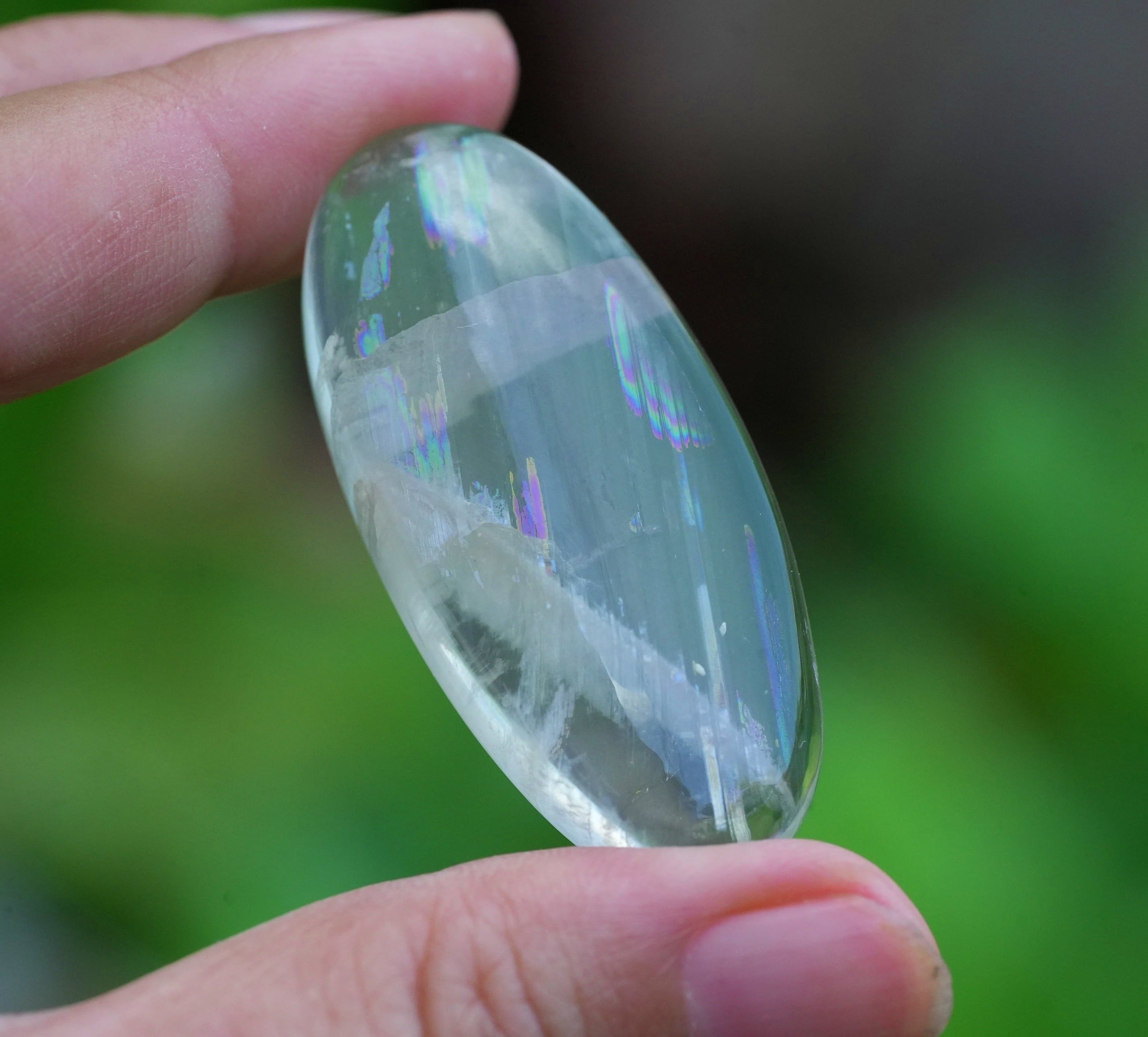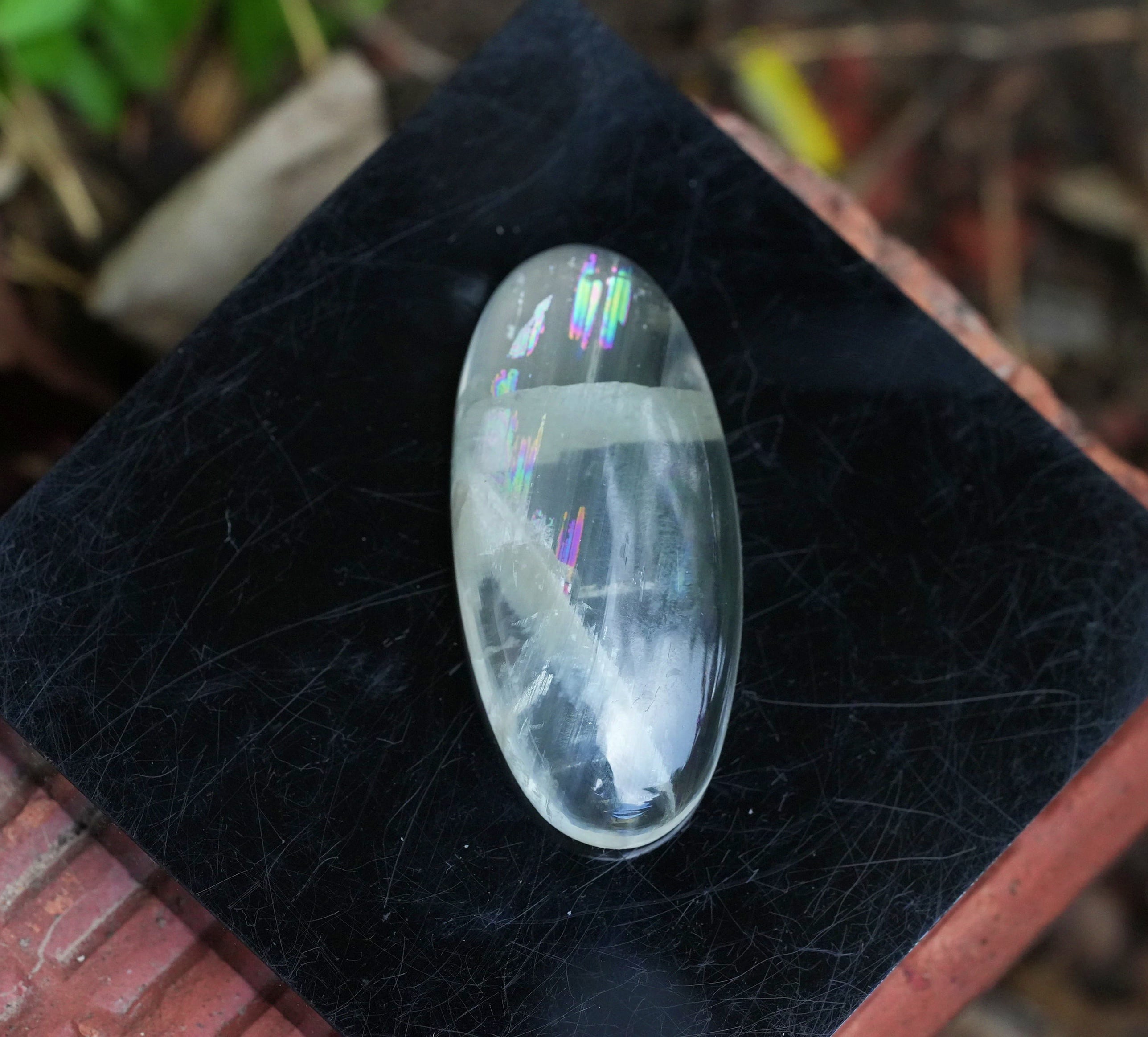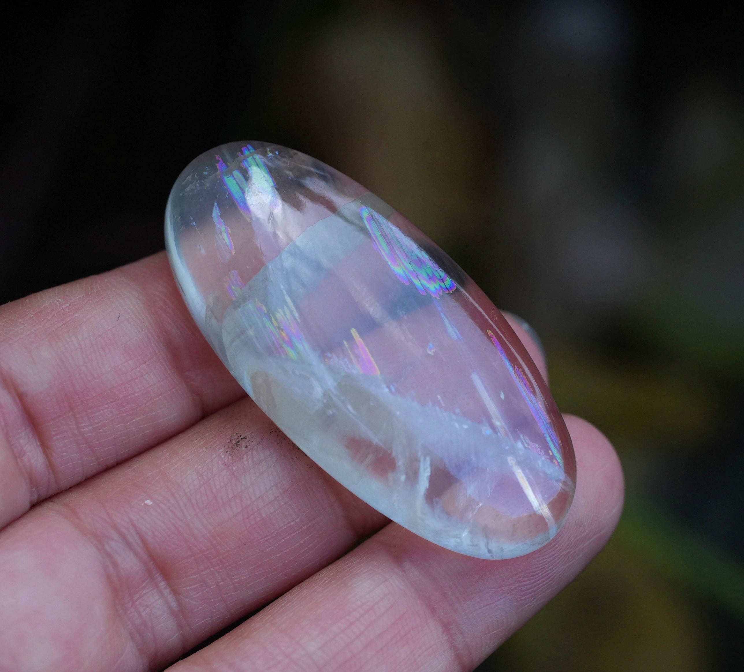 虹色のシラー(ラティス効果): 通常のムーンストーンが青や白の光を放つのに対し、マラウイ産は石の内部に虹色の層や筋状の光(レインボーラティスのような輝き)が見えるのが特徴です。