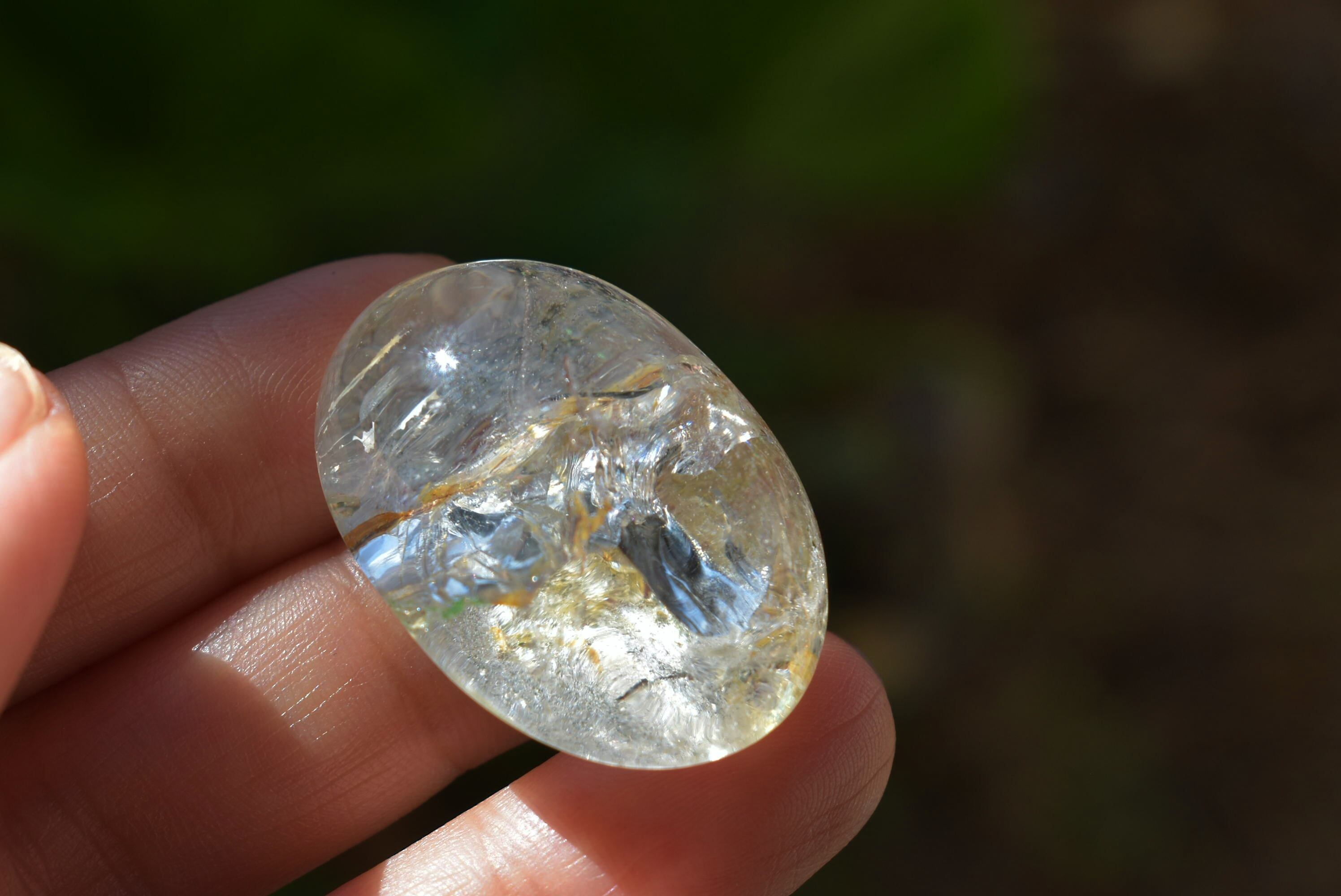 ミドルサイズのホワイトクォーツインクォーツ。虹インクルージョンとシラーをもしっかりと見ることができるもの。