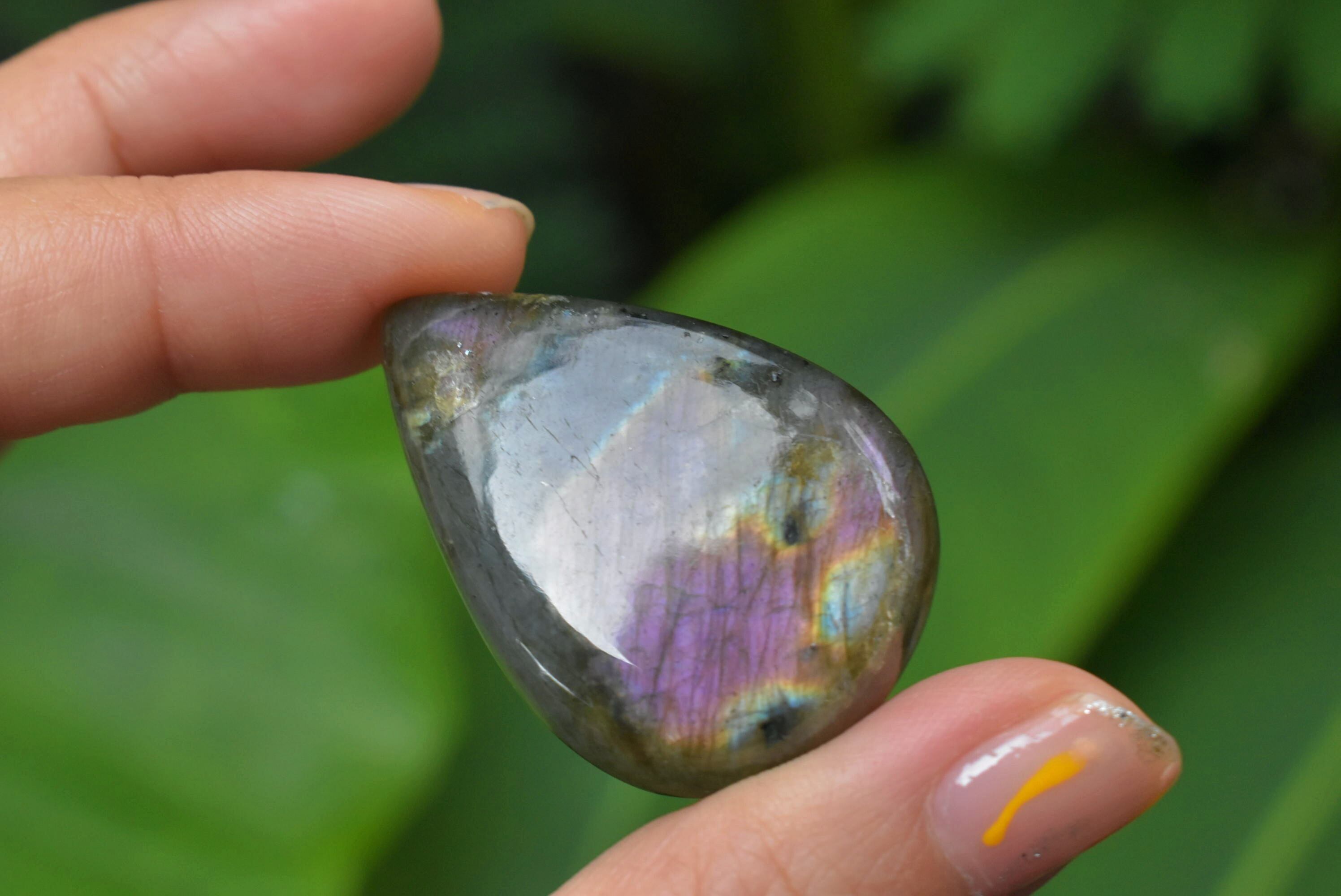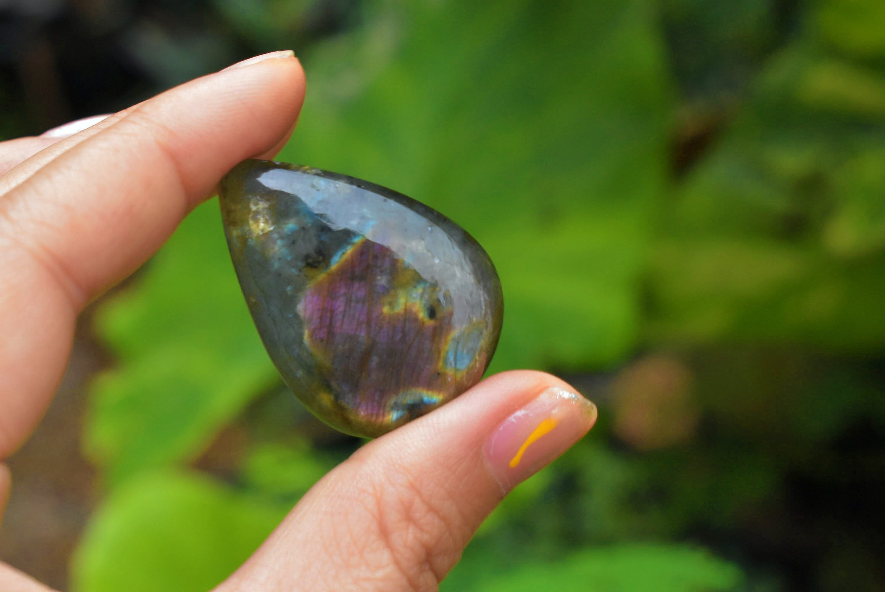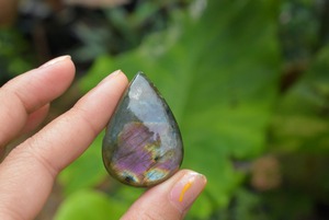 いろいろな色味が混ざっているマルチカラーとも言えるパープルラブラドライト。