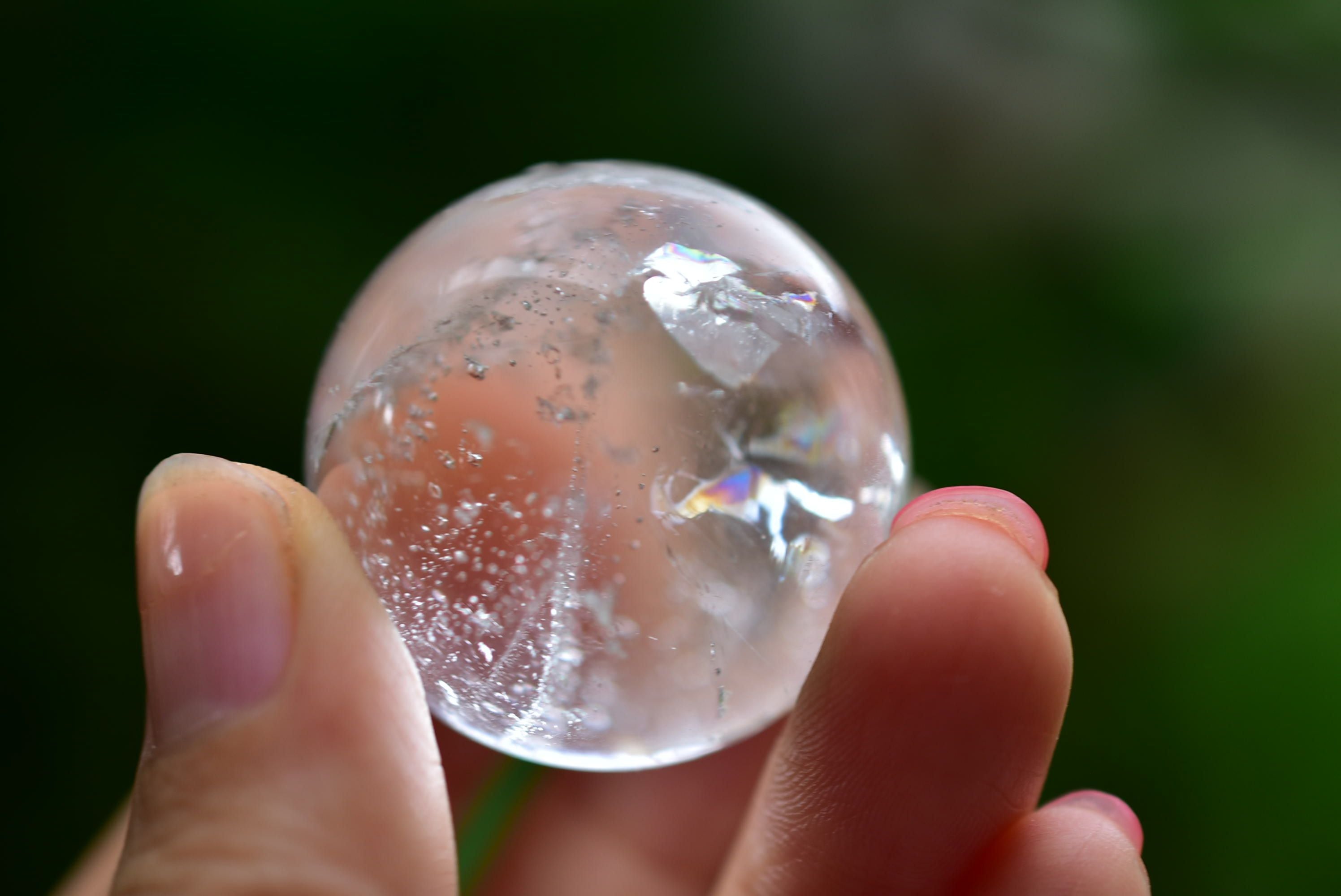 水晶内部のクラックが鏡面を作り、プリズム効果で虹の世界を魅せてくれます。