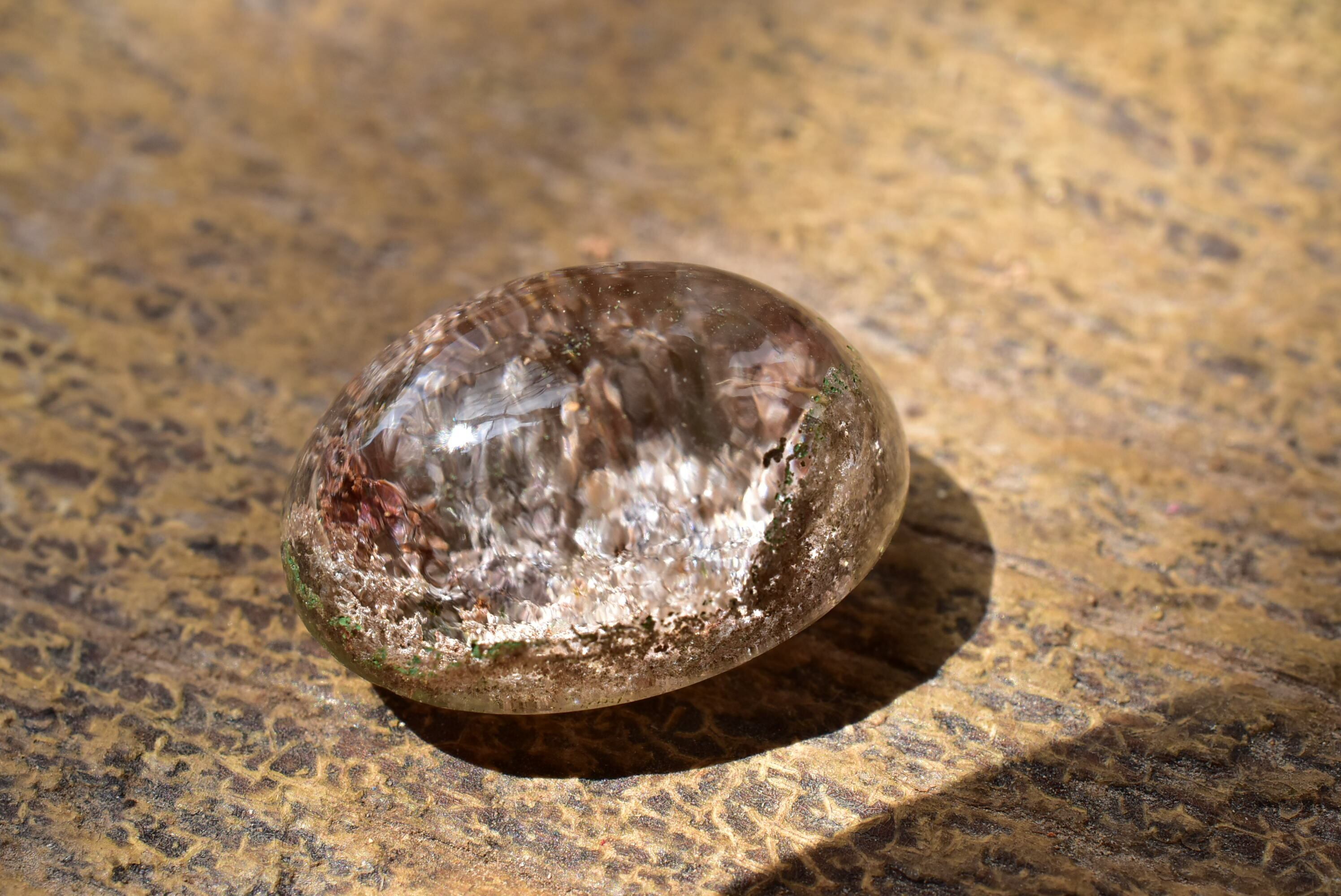 小粒ながらも、淡いピンクの内包物が美しく閉じ込められたガーデンクォーツ