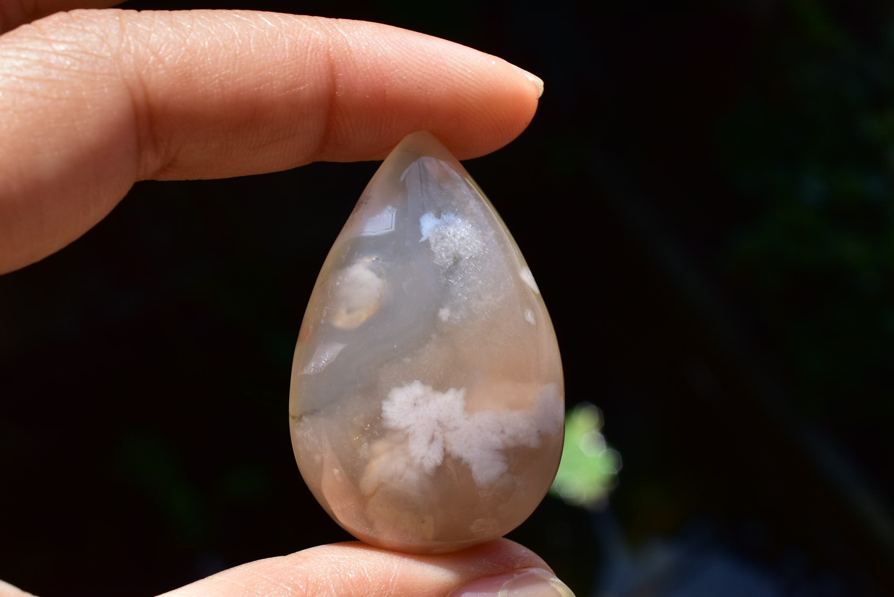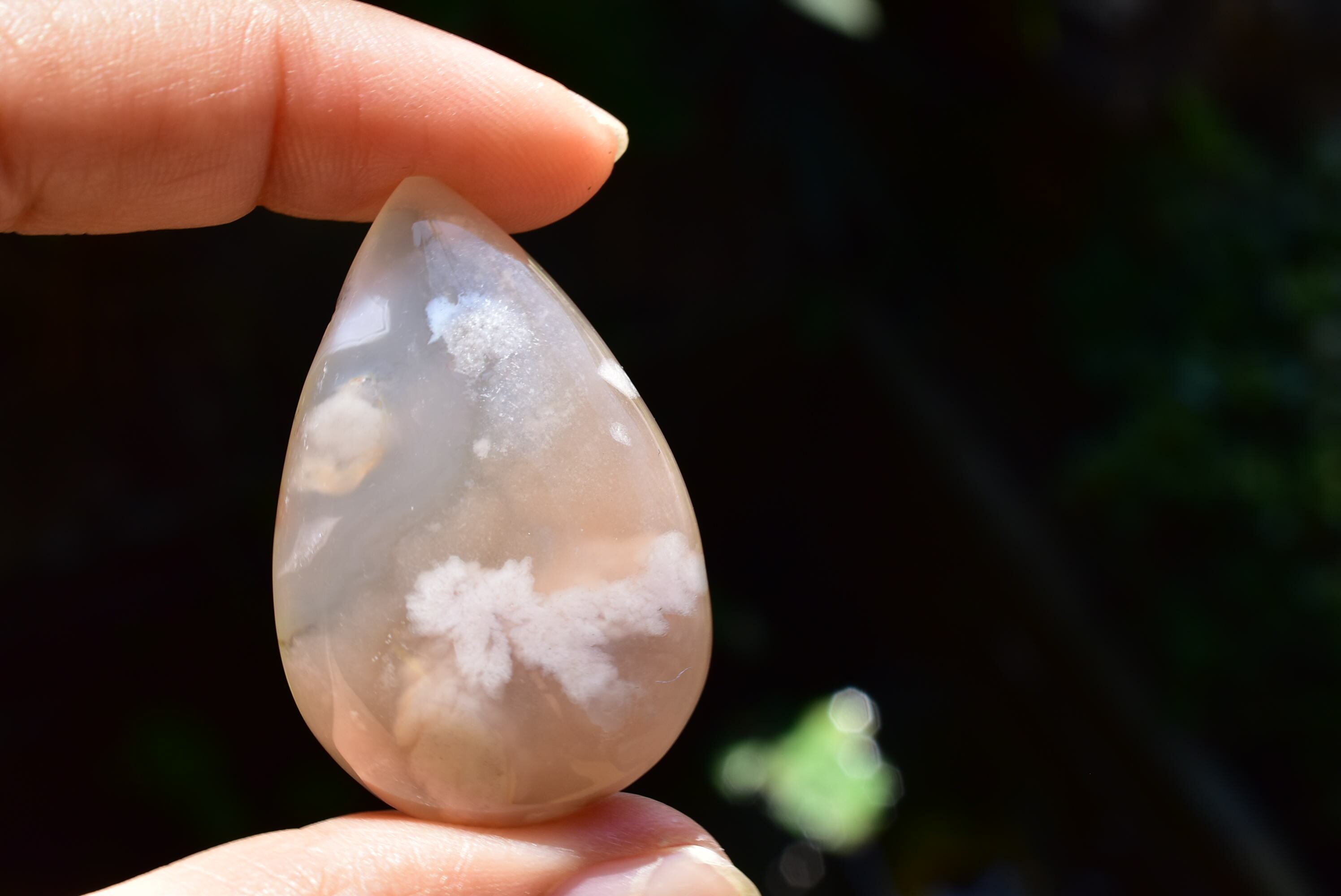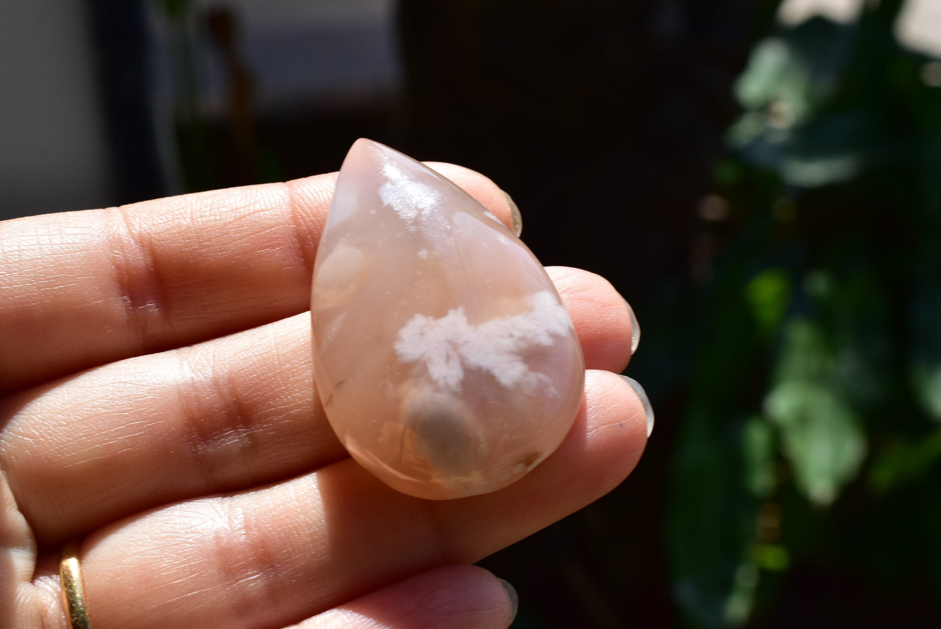 ピンクのグラデーションが美しいアゲートに、入り込んだ桜花のような内包物