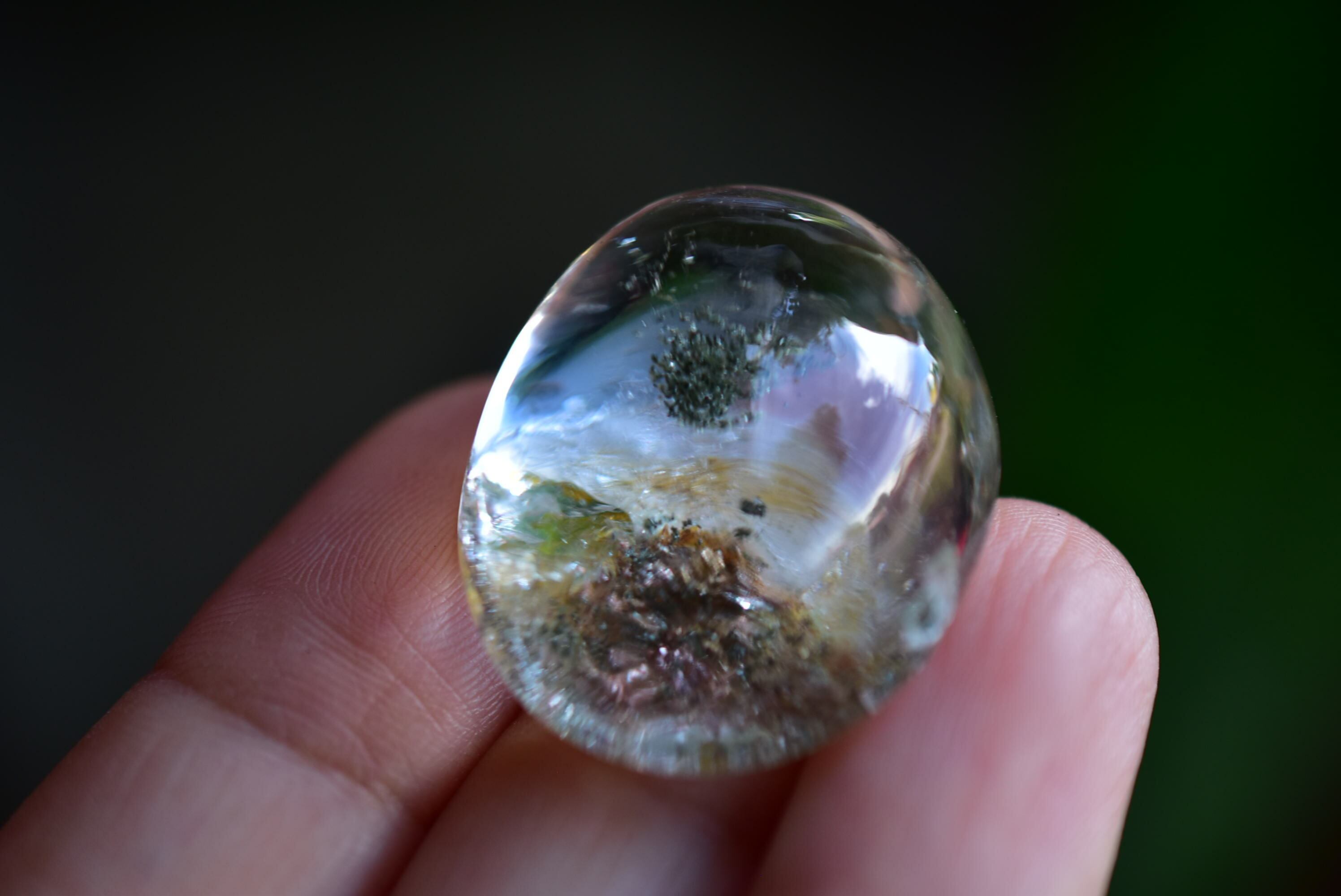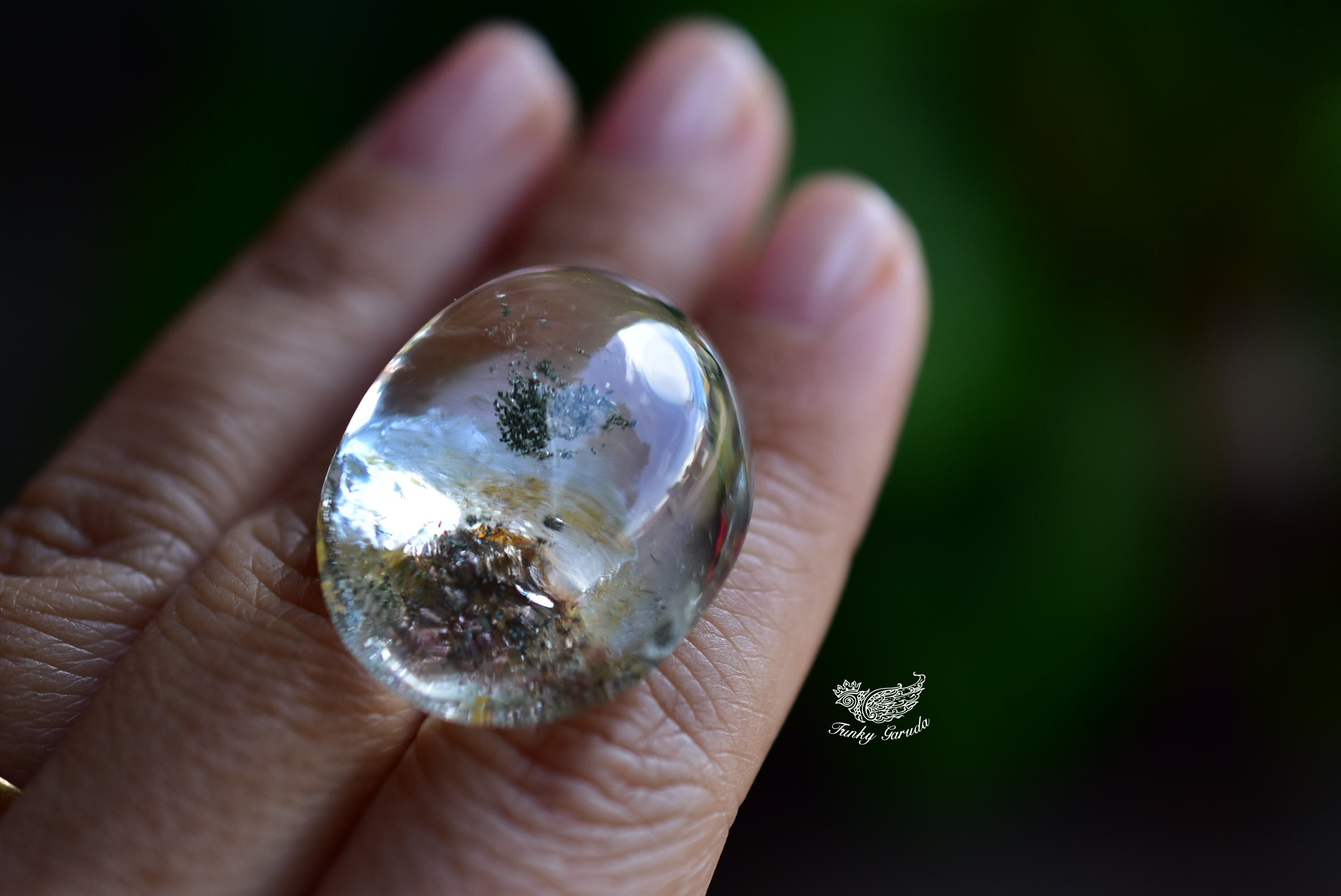 クラッククォーツとも言える部分と虹シラーも覗くことができるルース