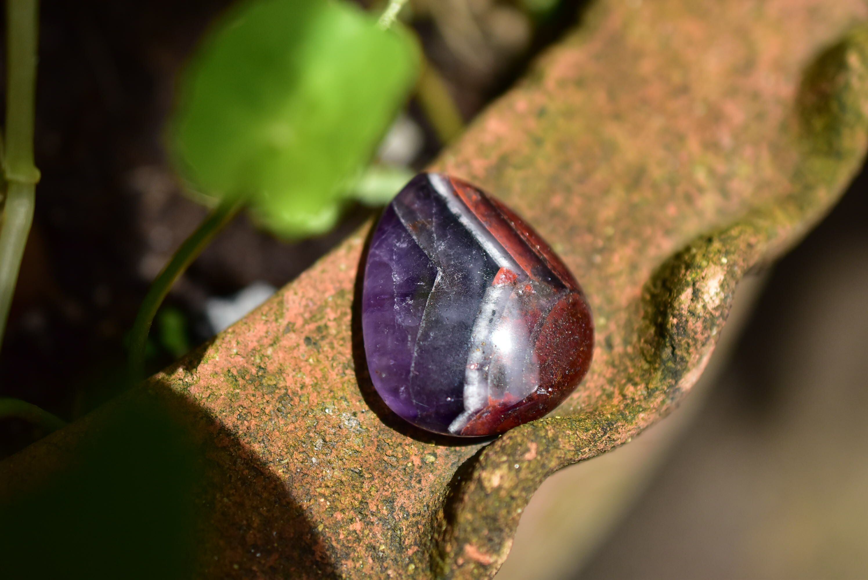 深みのある紫色と、白色、赤色の組み合わせが個性的な表情を持つルース