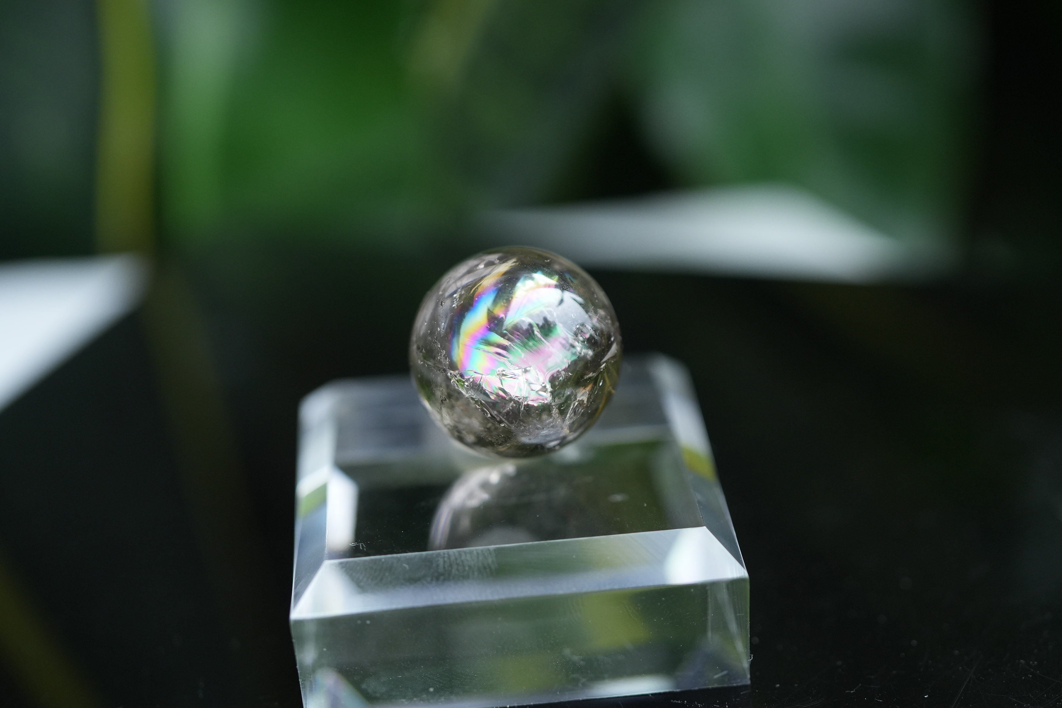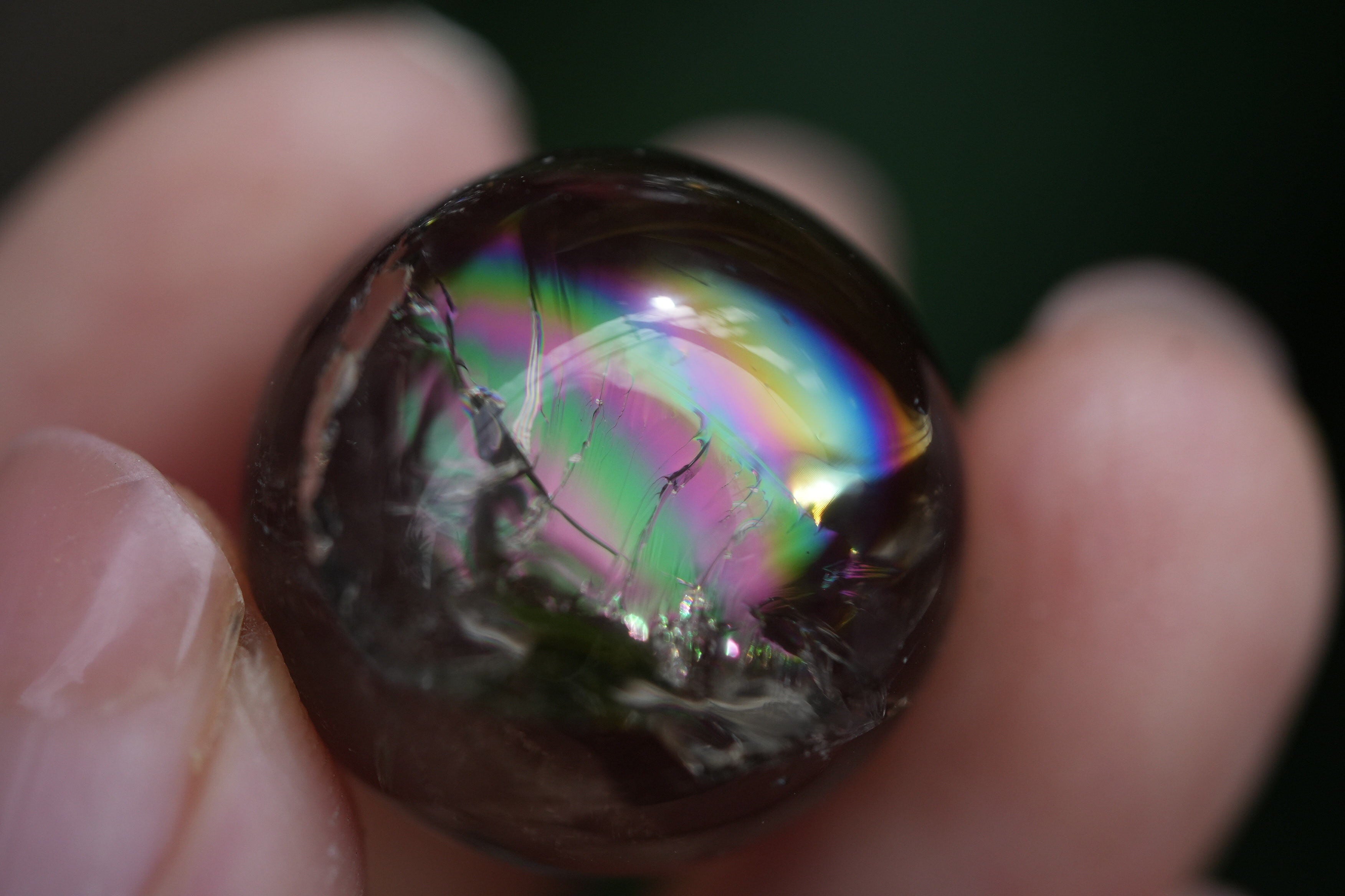 球体の中に虹インクルージョンが入り込んだ