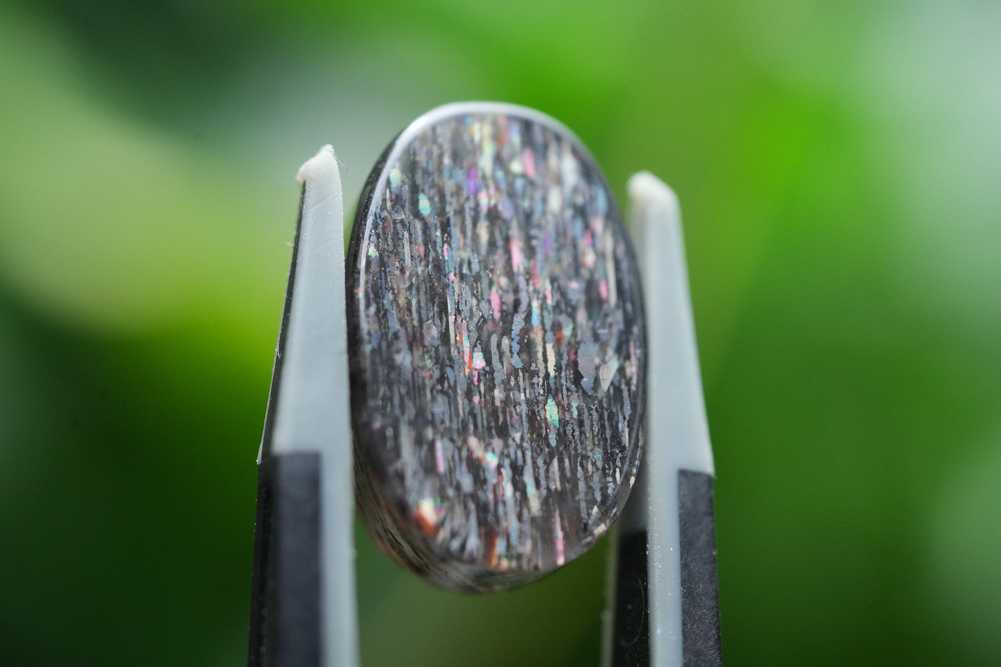 ダークカラーのベースに虹色のイリデッセンスがシャワーのように降り注ぐものを選んでまいりました。