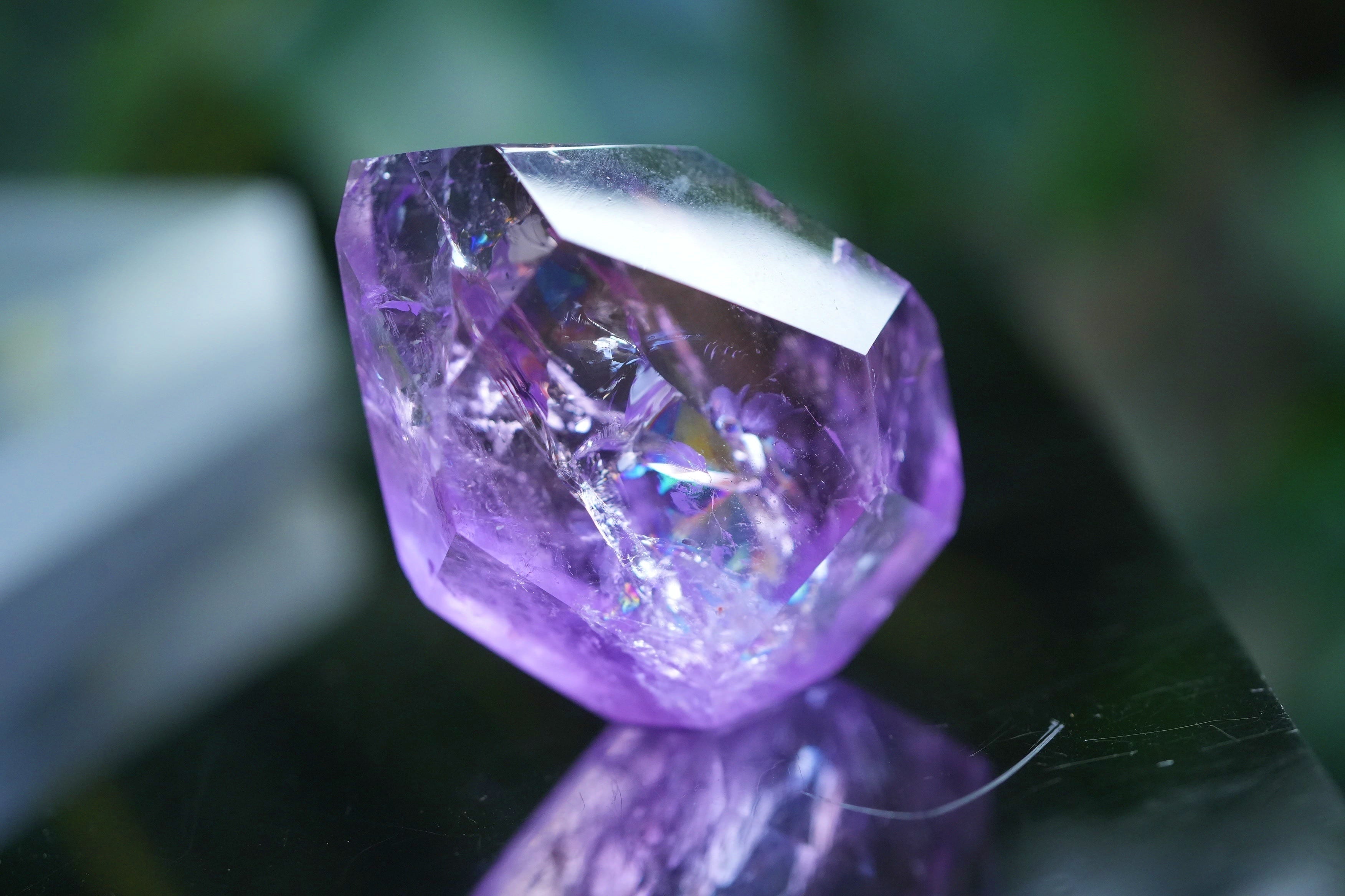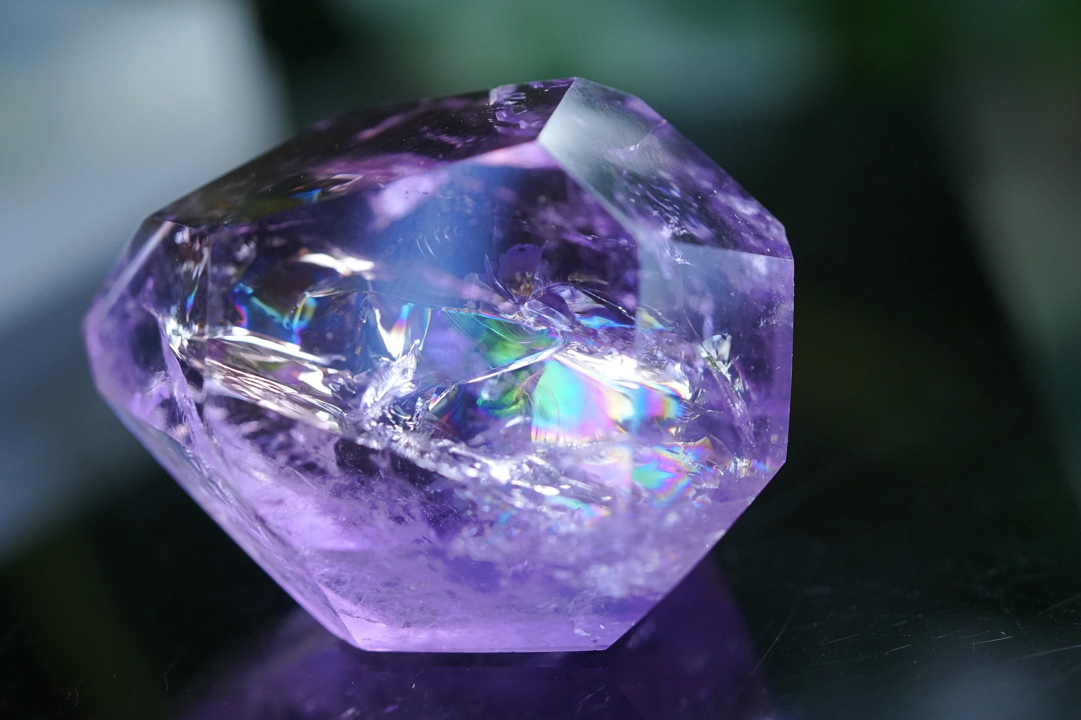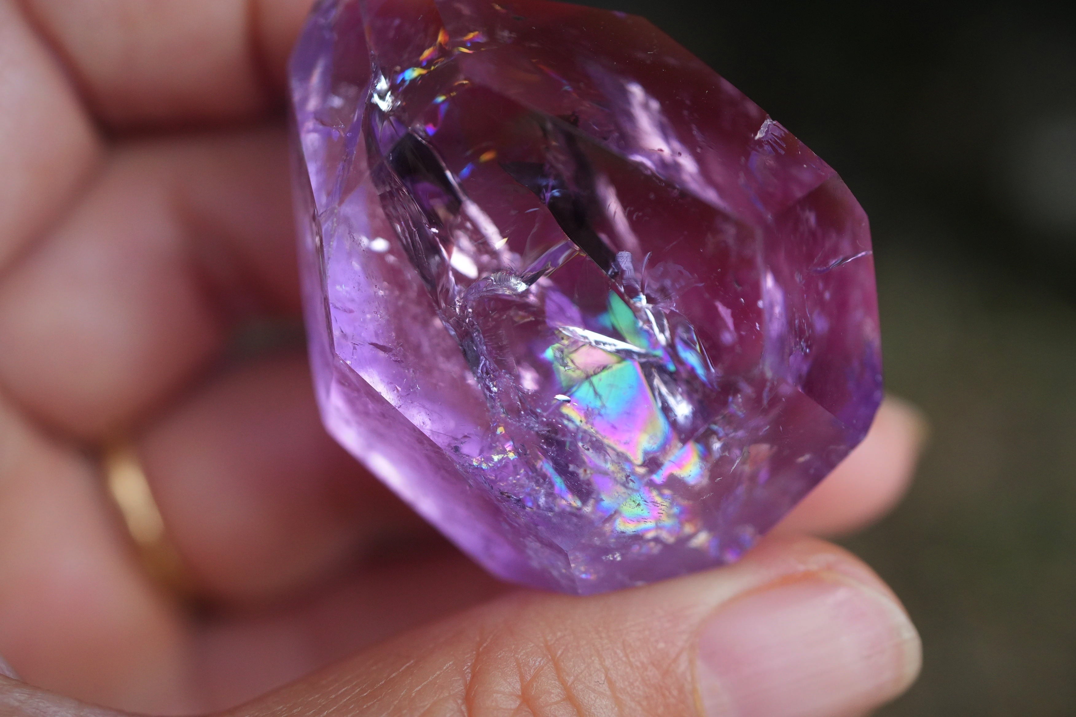 完璧なる原石研磨の透明世界の中に虹が見えます。