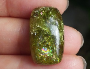 ルース全体にメラメラと虹インクルージョンが眩い輝きを魅せてくれる