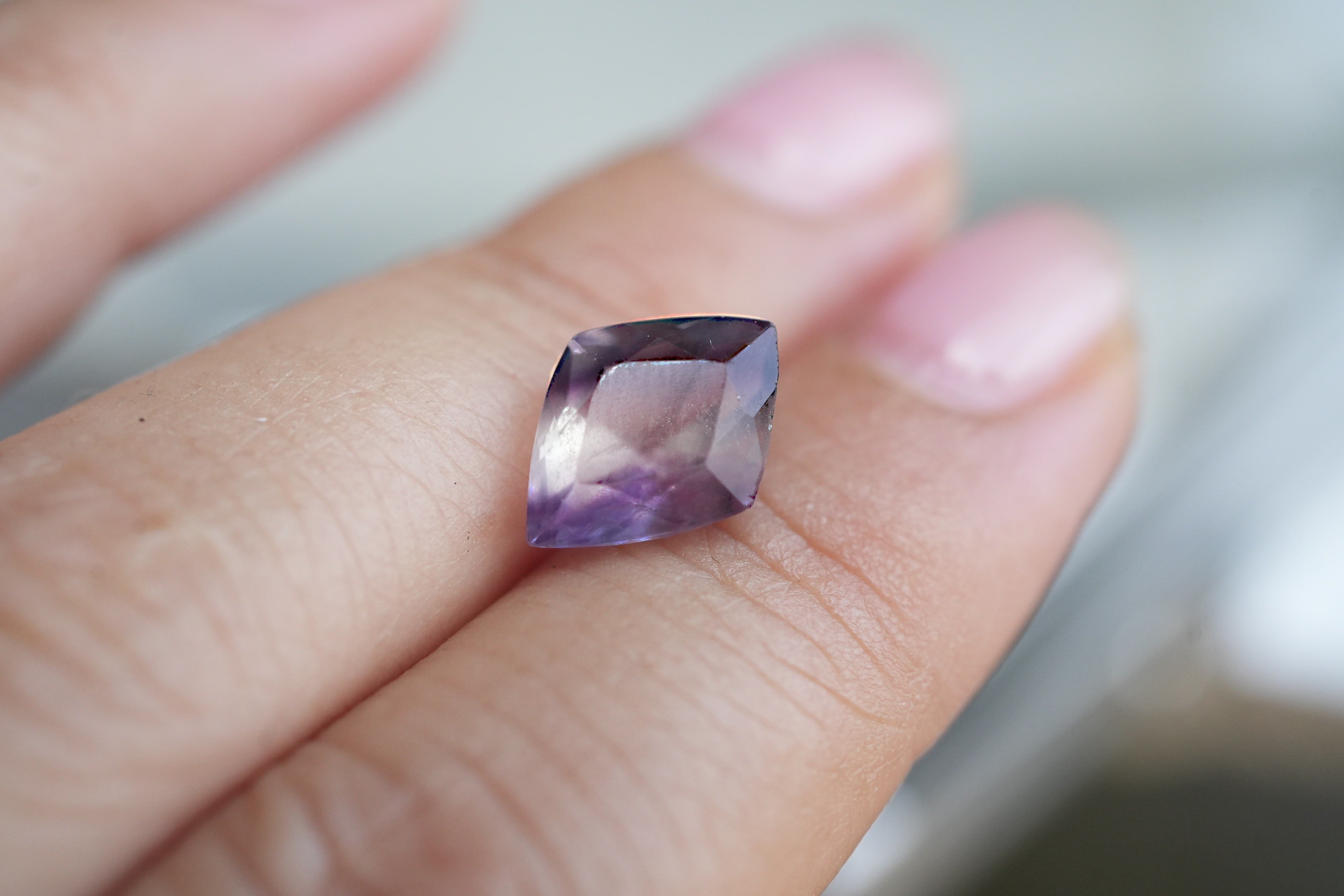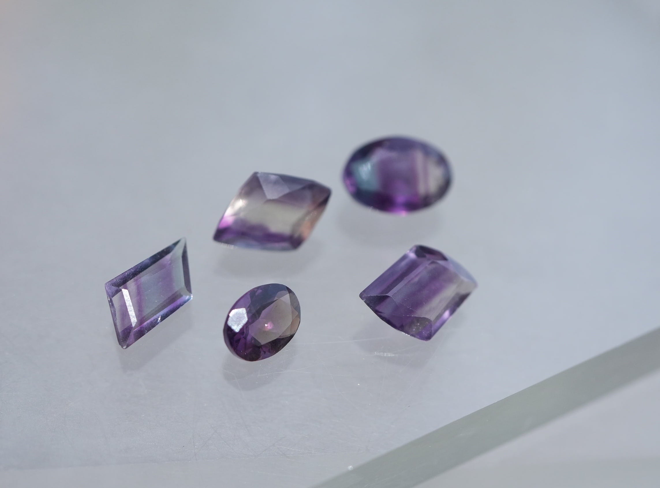 繊細にカットが施されたパープルフローライト。