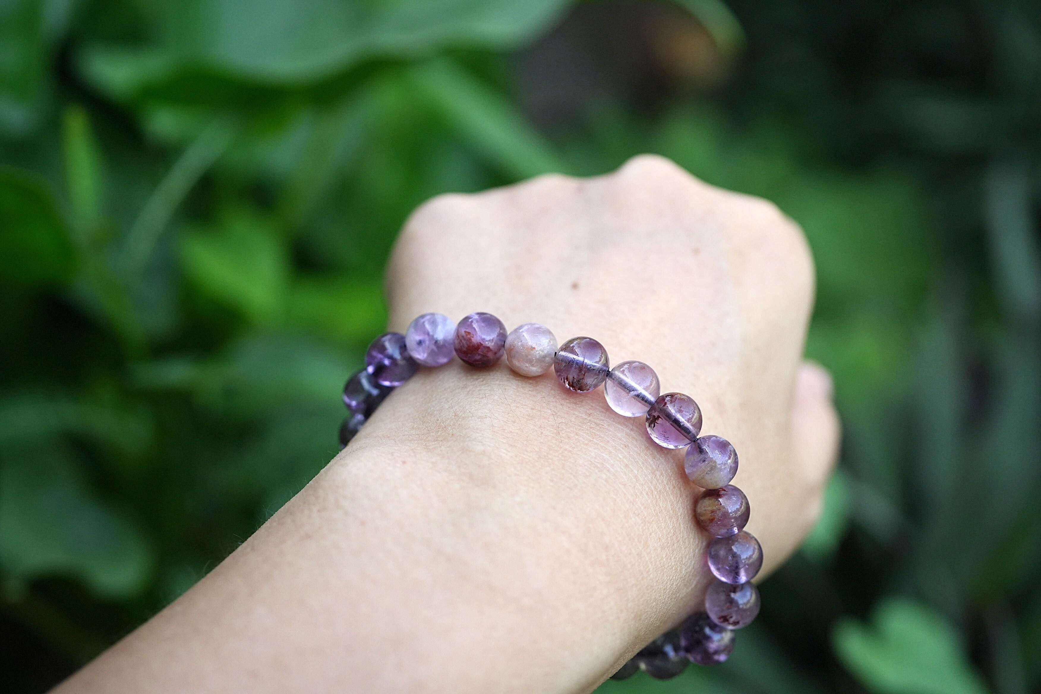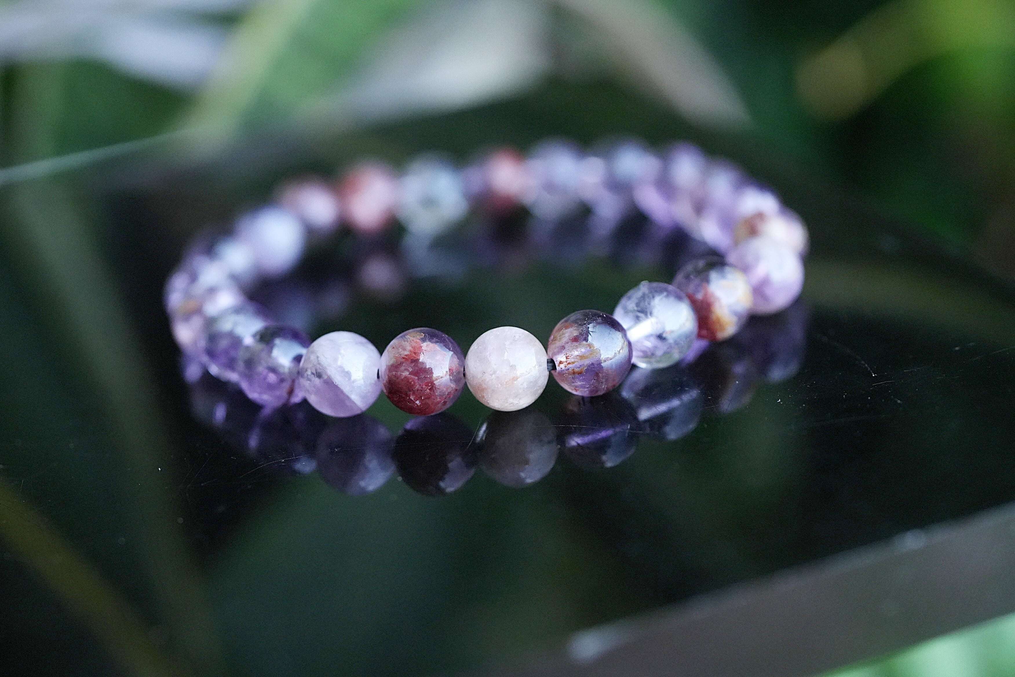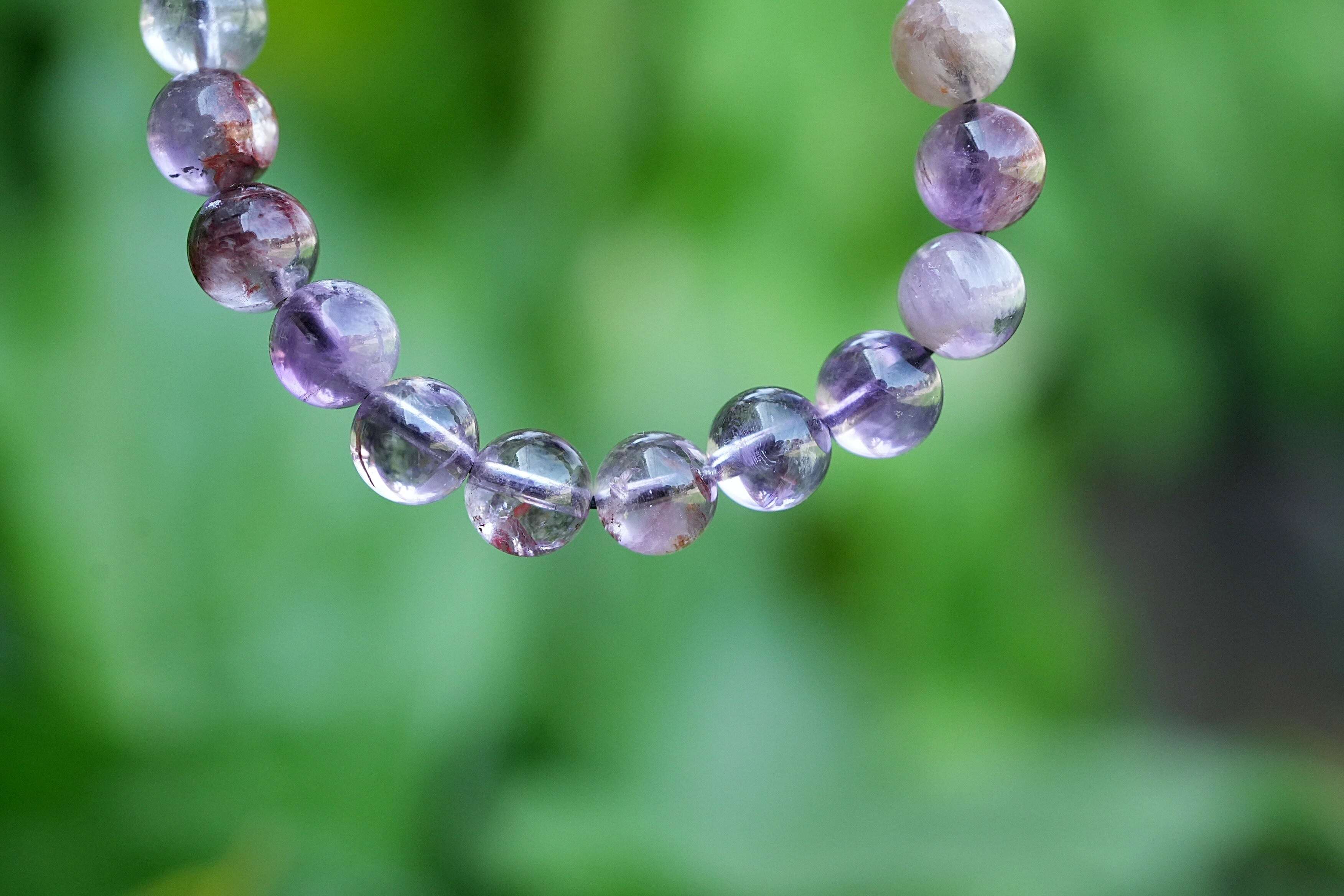 アメジストなのに様々な内包物を見ることができ大変美しいビーズをかき集めたブレスレットです。